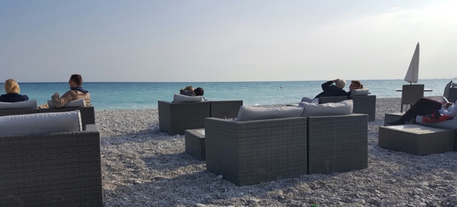 Nice is the "nicest" big city we have been to. It's clean, and classy, and has the Mediterranean Sea at its south. Our apartment was only 4 blocks from the beach, so it was easy to go down and walk along side when we went anywhere. Also, along the Promenade de Anglais are beach restaurants, so for the price of a glass of wine you can sit on comfy couches and enjoy the view and sun. We did just this on Wednesday and Thursday.